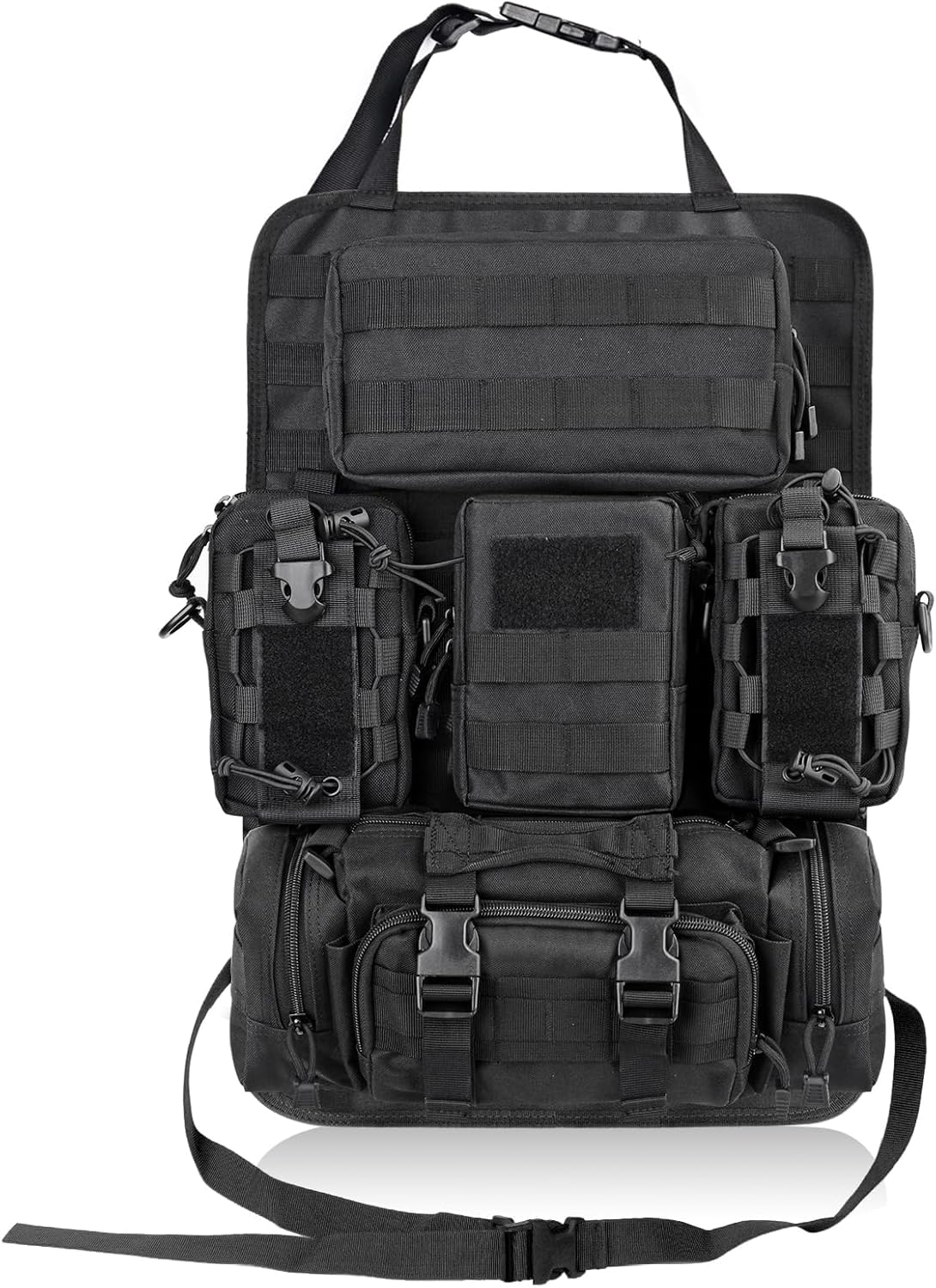 - 1,457 / 5,000 多機能収納: 背面に 5 つのモール バッグが付いているので、タクティカル ギアや個人用アイテムを収納し、スペースを節約できます。さまざまなサイズのモール バッグでアイテムを簡単に分類できます。タクティカル シート バック オーガナイザーは、自分の習慣やニーズに合わせて設定できます。